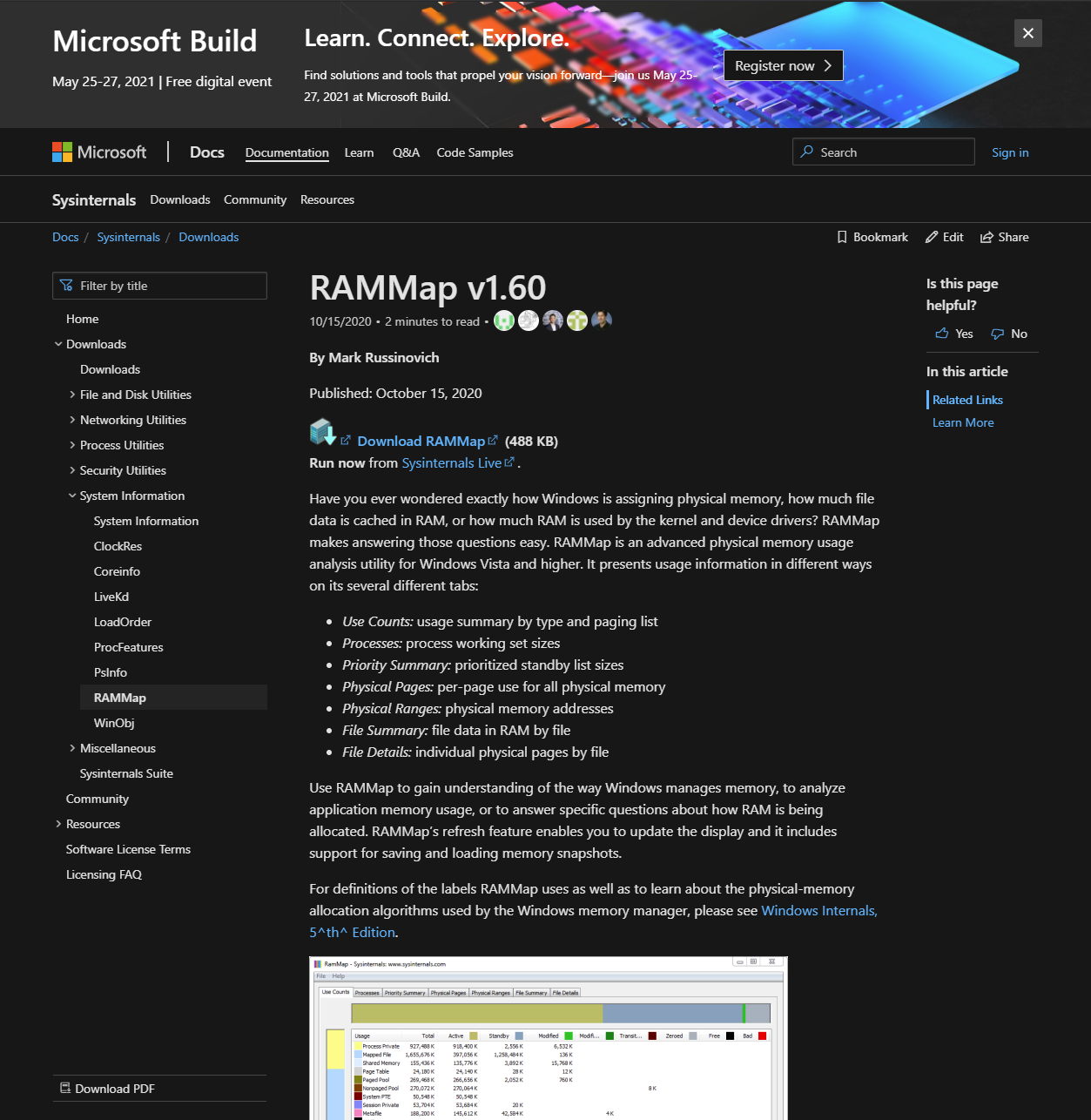 1. RAMMap v1.60 (링크[Link]) Microsoft에서 개발한 프로그램이고, 현재 시스템에서 구동 중인 다양한 프로그램의 메모리를 refresh 하는 기능을 갖고 있다.