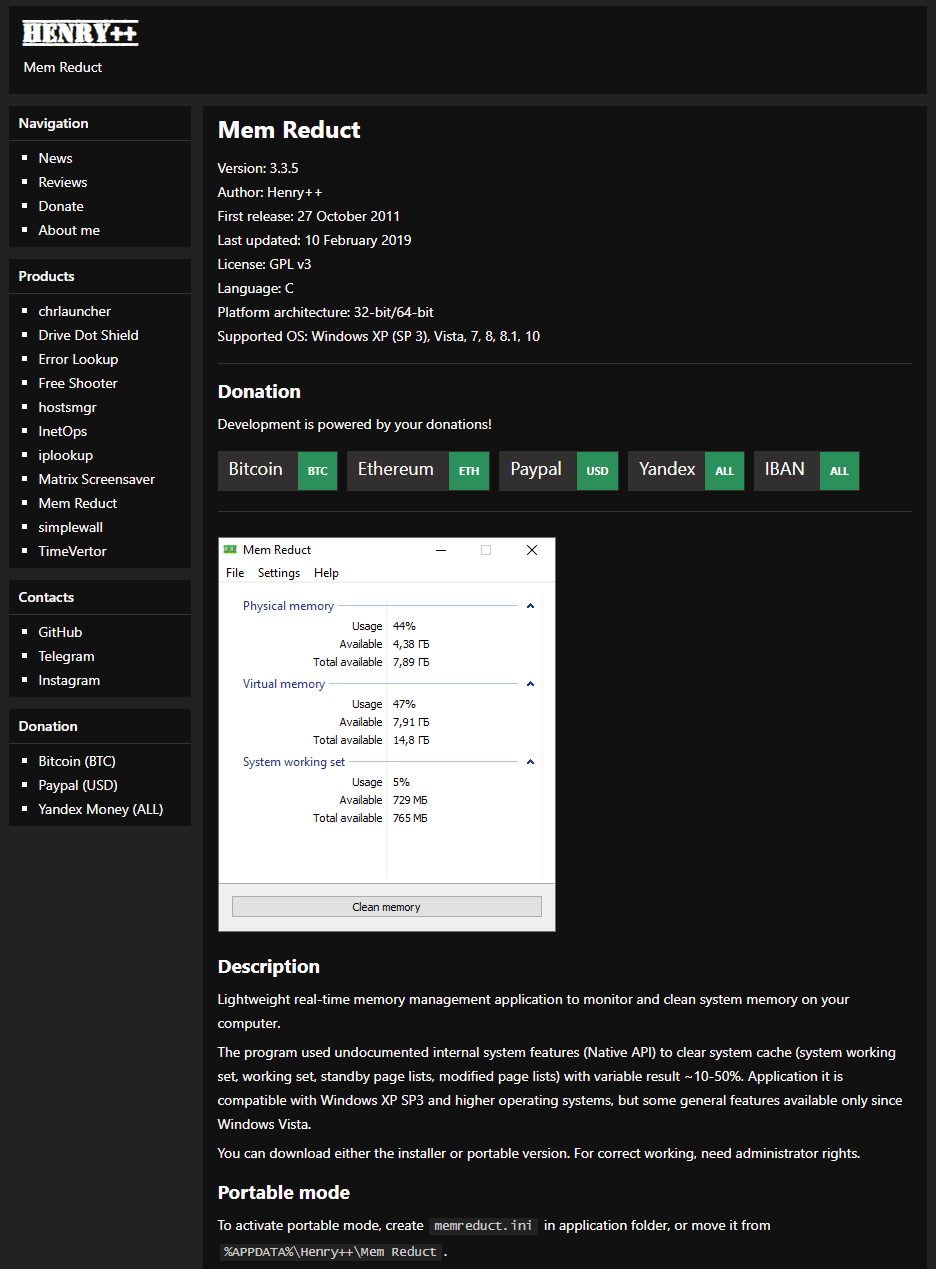 2. Mem Reduct (링크[Link]) RAMMap과 비슷한 프로그램이다. 개인 개발자가 만든 프로그램이며, GitHub에서 소스코드를 찾아볼 수 있다.